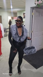 One piece jumper Mink ( Like ) Fur collar